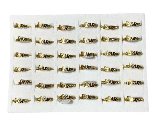 GOLDEN STAINLESS STEEL LOVE RING WITH ROCKS – Set of 36