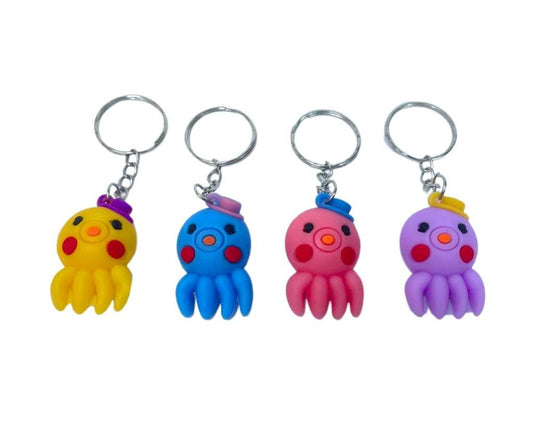 RUBBER COLORFUL OCTOPUS WITH HAT KEYCHAIN – 12