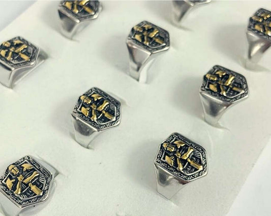 SILVER STAINLESS STEEL RING WITH GOLDEN KNIGHT- Set of 12