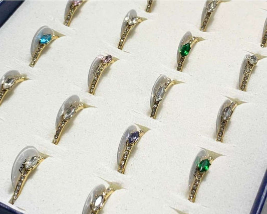 THIN GOLDEN STAINLESS STEEL RING WITH COLORED STONE STRASS – Set of 24