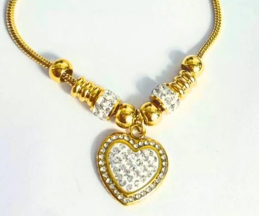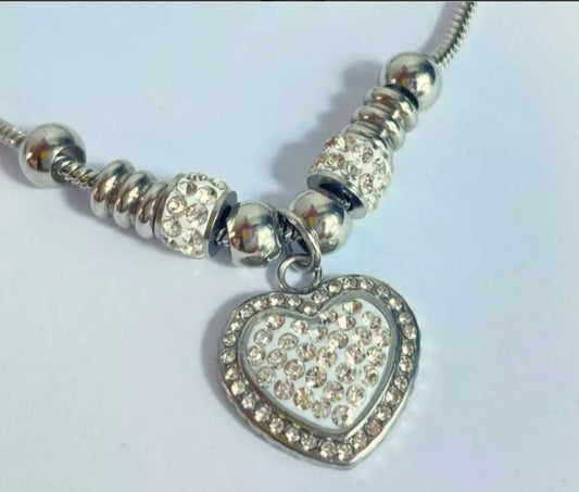 STAINLESS STEEL BRACELET CHARM W/ RHINESTONES HEART PENDANT - Set of 12