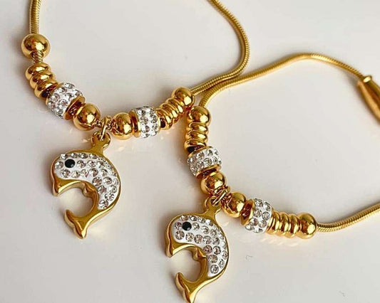 GOLDEN STAINLESS STEEL BRACELET STUDDED WITH CHARM DOLPHIN- Set of 12