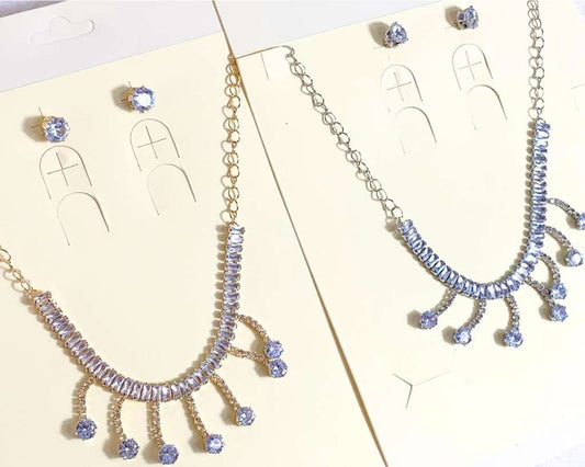 SET GOLDEN SILVER NECKLACE AND EARRING ZIRCONIA- Set of 12