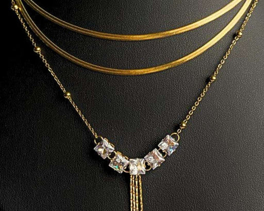 GOLDEN STAINLESS STEEL NECKLACE Q – Set of 12