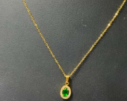 NECKLACE GREEN HEXAGONAL CRYSTAL PENDANT- Set of 12