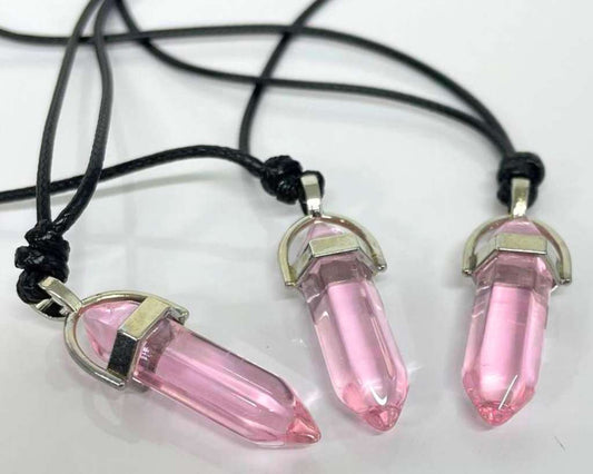 NECKLACE PINK HEXAGONAL CRYSTAL PENDANT- Set of 12