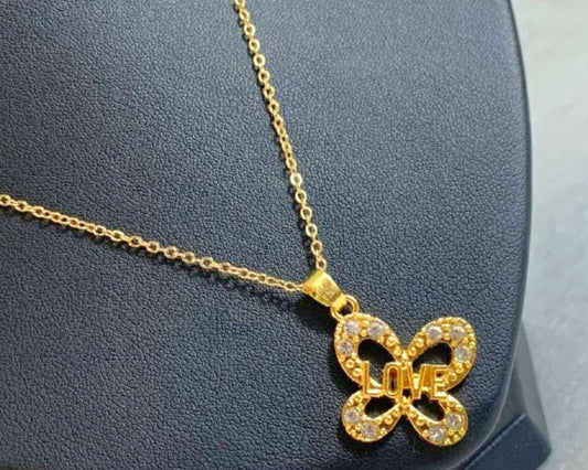 GOLDEN STAINLESS STEEL NECKLACE LOVE BUTTERFLY – Set of 12
