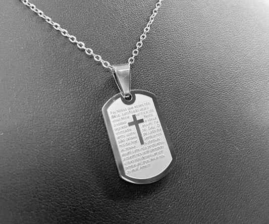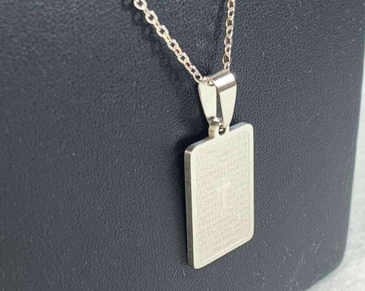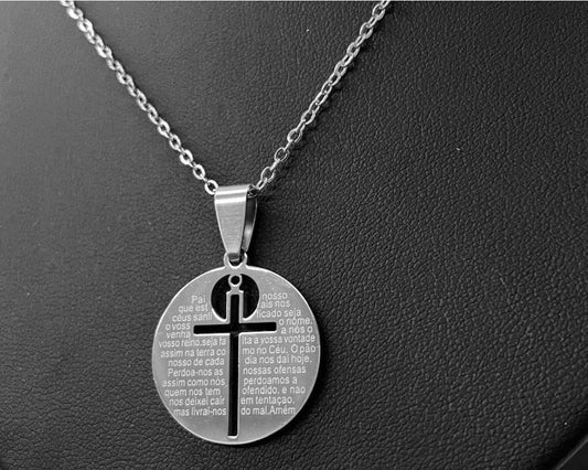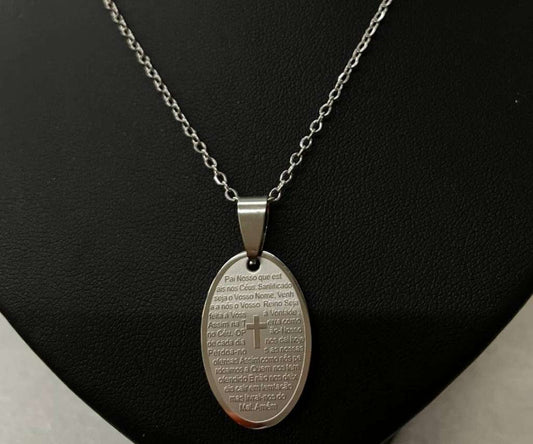 SILVER STAINLESS STEEL NECKLACE (ORAÇÃO/PRAYER)–Set of 12