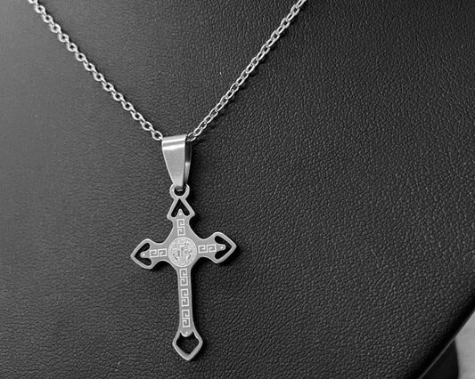 SILVER CROSS NECKLACE WITH HEART- Set of 12