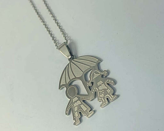 SILVER NECKLACE COUPLE PENDANT WITH UMBRELLA - Set of 12