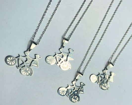 SILVER NECKLACE WITH COUPLE ON BICYCLE PENDANT – Set of 12