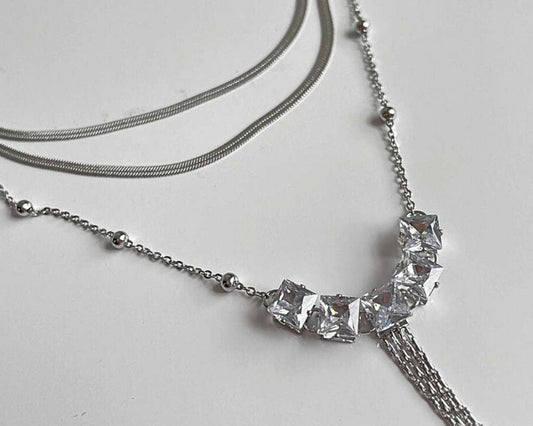 SILVER STAINLESS STEEL NECKLACE RECTANGULE - Set of 12
