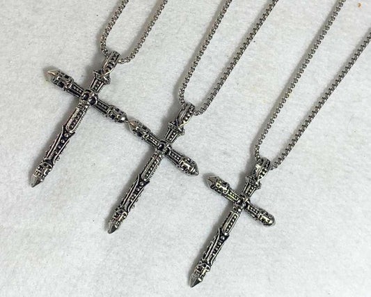 SILVER STAINLESS STEEL NECKLACE CROSS – Set of 12