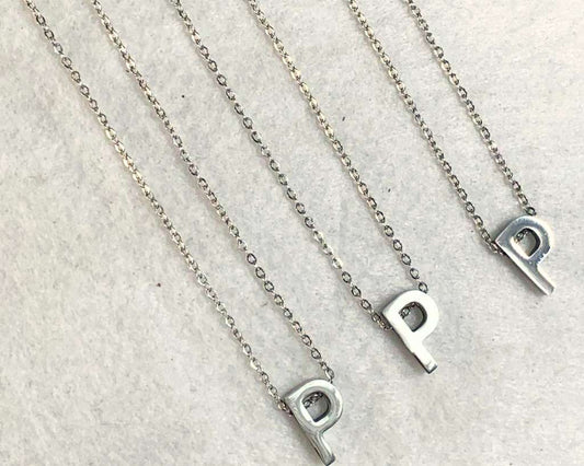 SILVER STAINLESS STEEL NECKLACE LETTER P – Set of 12