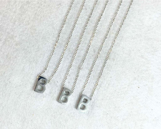SILVER STAINLESS STEEL NECKLACE LETTER B - Set of 12