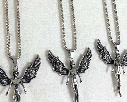 SILVER STAINLESS STEEL NECKLACE WOMAN WITH WING– Set of 12