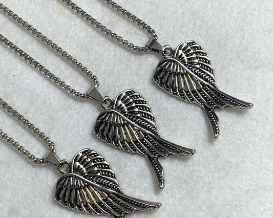SILVER STAINLESS STEEL NECKLACE WING - Set of 12