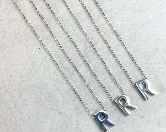 SILVER STAINLESS STEEL NECKLACE LETTER R – Set of 12