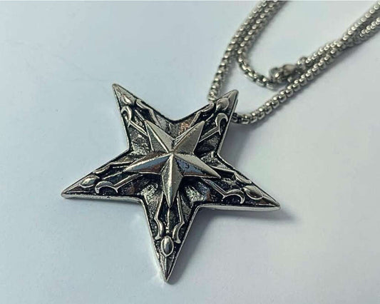 SILVER STAINLESS STEEL NECKLACE STAR – Set of 12