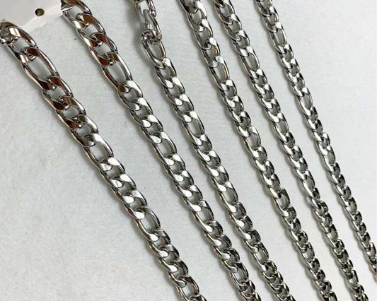 SILVER STAINLESS STEEL FÍGARO CHAIN NECKLACE 1.0 MM / 60 CM – Set of 12