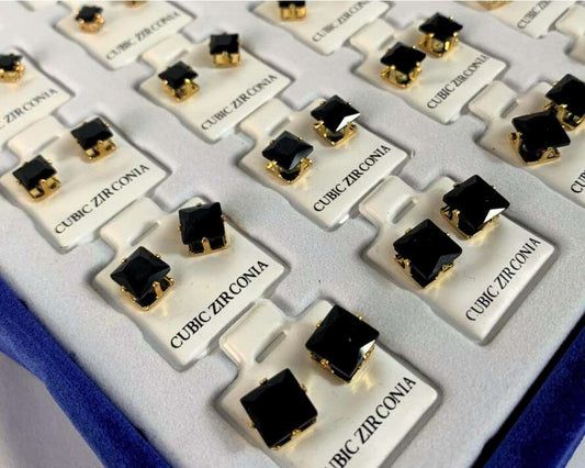 GOLDEN EARRING WITH SQUARE STONE – 36 PAIRS