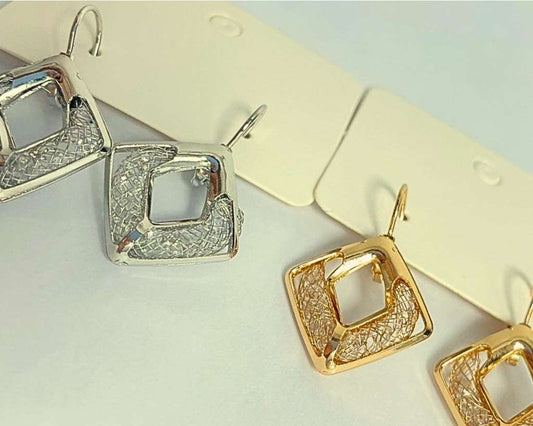 TRIANGLE EARRING WITH SHINY NET – Set of 12