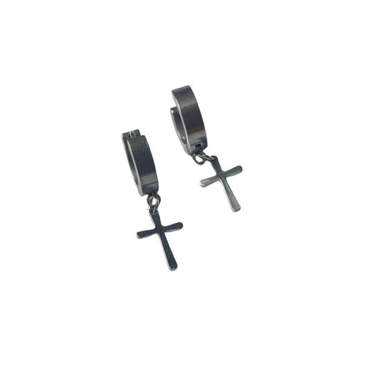 BLACK SMALL CROSS CLIP HOOP EARRINGS - 120 PAIRS