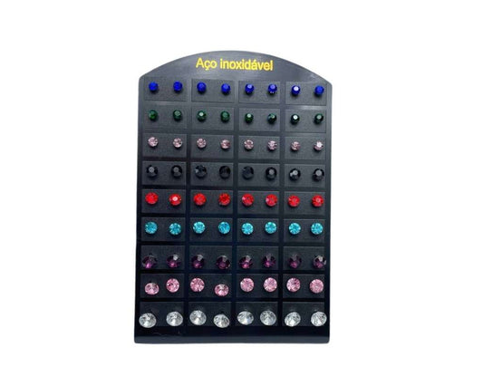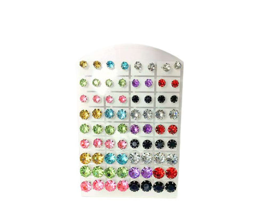 EARRINGS WITH COLORFUL ZIRCONIA STONE LOT A SIZES – 10 PACKS WITH 36 PAIRS EACH