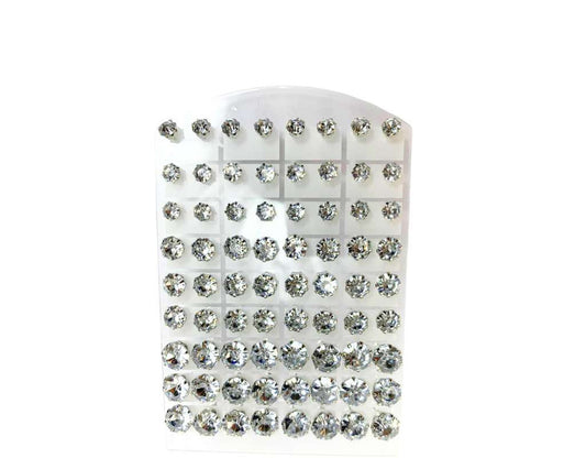 EARRINGS WITH WHITE ZIRCONIA STONE LOT A SIZES – 10 PACKS WITH 36 PAIRS EACH