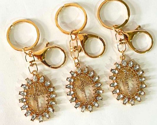 GOLDEN KEYCHAIN CROSS WITH RHINESTONES –Set of 12