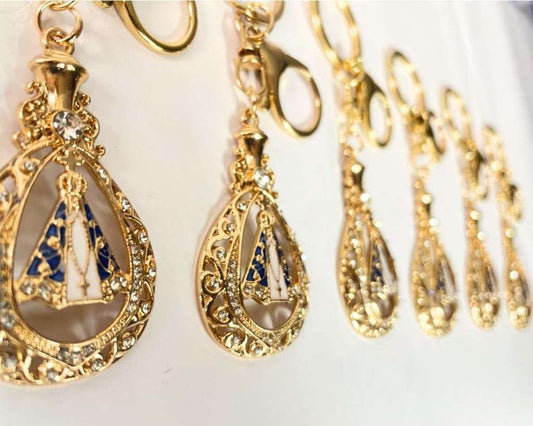 GOLD KEYCHAIN O.LADY APPARITIONS WITH RHINESTONES- Set of 12