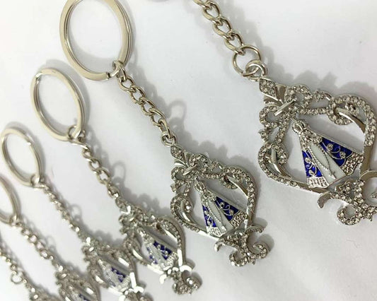 SILVER KEYCHAIN CIRCLE O. LADY APPARITIONS WITH RHINESTONES – 12