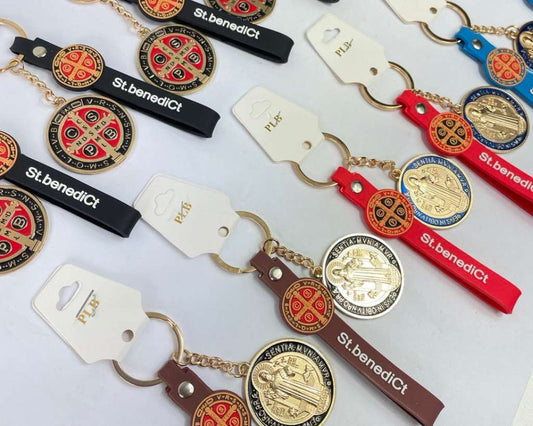 KEYCHAIN SAINT BENEDICT WITH COLORED RUBBER BRACELET – Set of 12