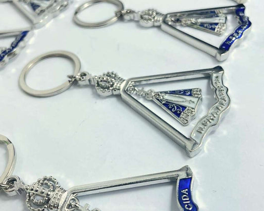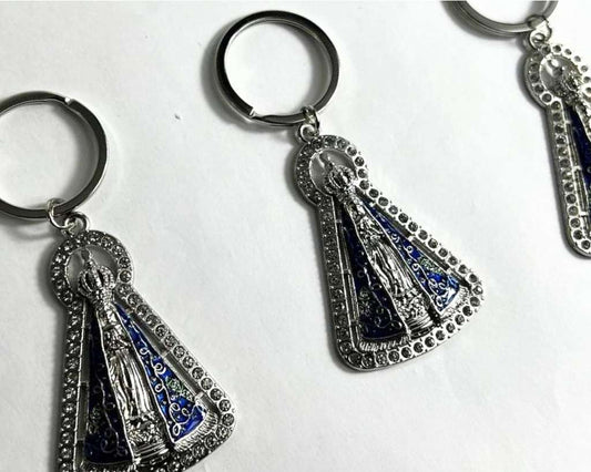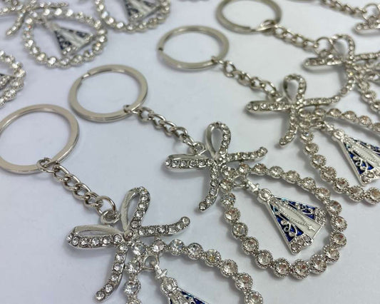 SILVER KEYCHAIN O.LADY APPARITIONS WITH RHINESTONES – Set of 12