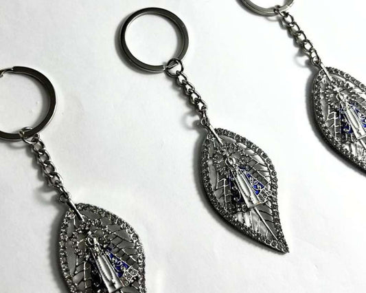 SILVER KEYCHAIN LEAF O.LADY APPARITIONS – Set of 12