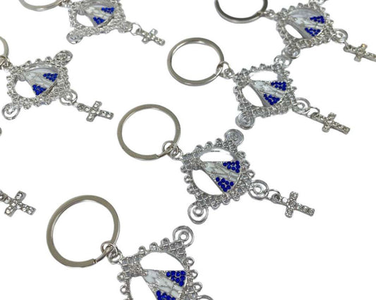 SILVER KEYCHAIN O. LADY APPARITIONS WITH CROSS- Set of 12