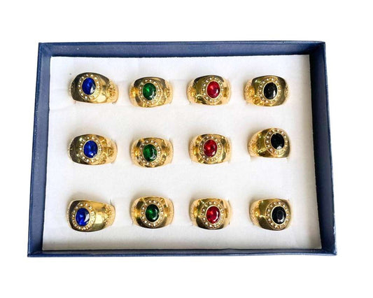 GOLDEN STAINLESS STEEL RING WITH SAINT BENTO STONES – Set of 12