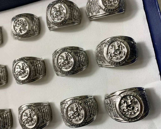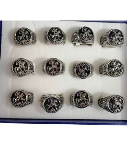 SILVER STAINLESS STEEL RING SAINT JORGE WITH BLACK BACKGROUND – Set of 12