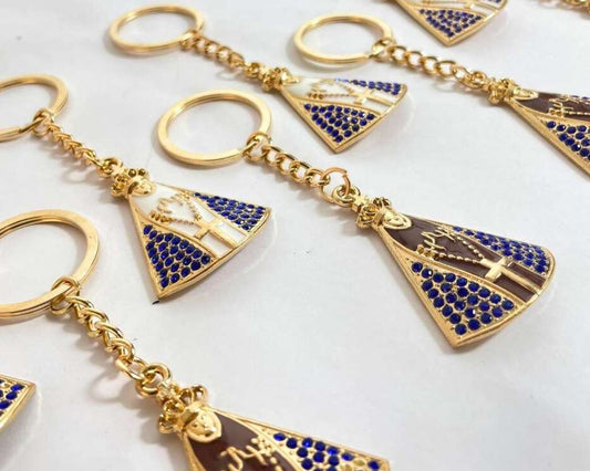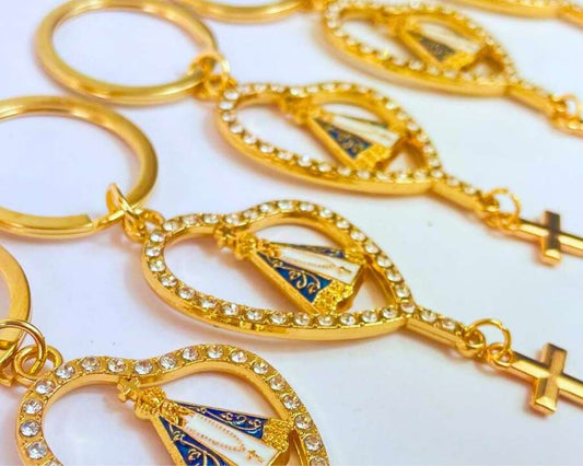 GOLDEN KEYCHAIN OUR LADY OF APARECIDA WITH RHINESTONES- Set of 12