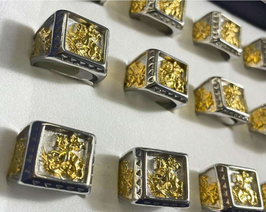 SILVER STAINLESS STEEL SAINT GEORGE RING WITH PRAYER- Set of 12