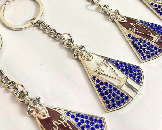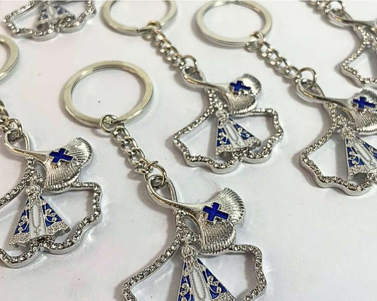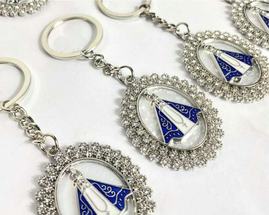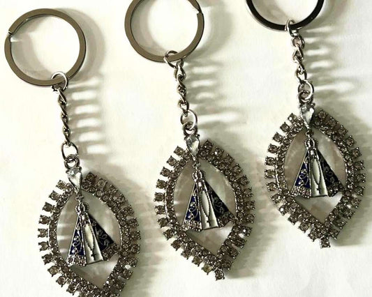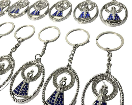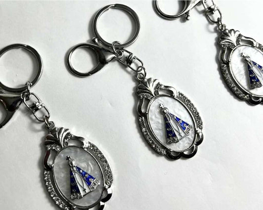 SILVER KEYCHAIN O.LADY APPARITIONS WITH RHINESTONES – Set of 12