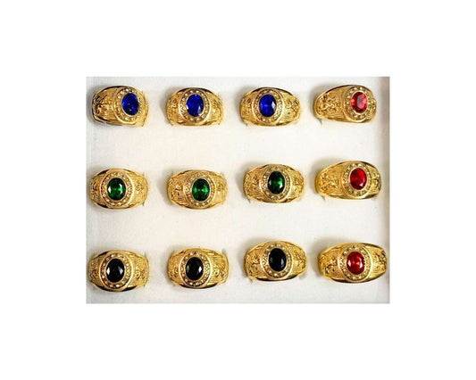 GOLDEN STAINLESS STEEL RING WITH SAINT JORGE COLORED STONE – Set of 12