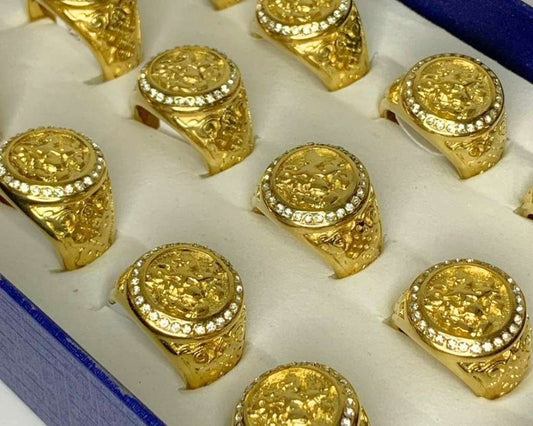 STAINLESS STEEL RING SAINT JORGE GOLDEN WITH RHINESTONES – Set of 12