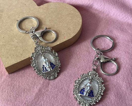 SILVER STAINLESS STEEL KEYCHAIN O.LADY APPARITIONS DROP – Set of 12
