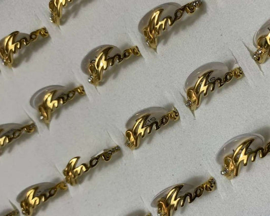 GOLDEN STAINLESS STEEL LOVE RING WITH ROCKS – Set of 24