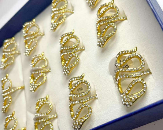 GOLDEN STAINLESS STEEL SNAKE RING WITH STRASS- Set of 12