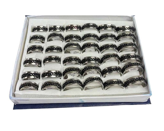 SILVER STAINLESS STEEL RING WITH CHAIN 8MM– Set of 36