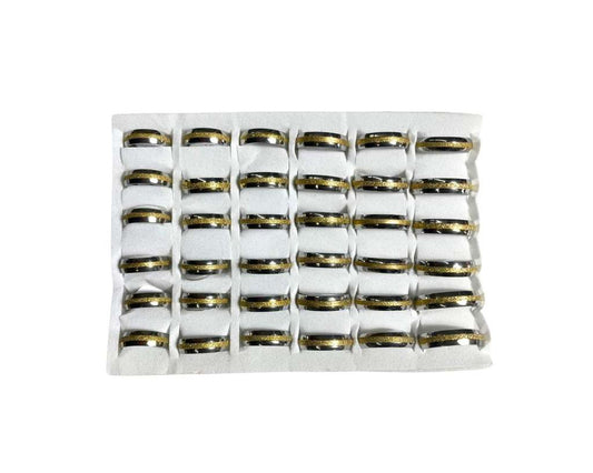 SILVER STAINLESS STEEL RING WITH GOLDEN DIAMOND RIMING 6mm – Set of 36 UNITS