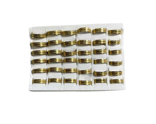 DIAMOND GOLDEN STAINLESS STEEL RING WITH 3 RIDGES 6mm – 36 UNITS