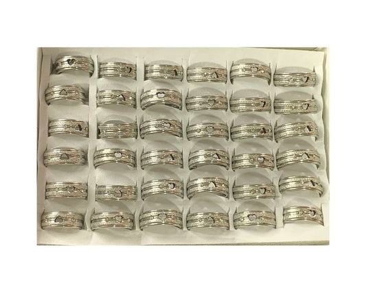 DIAMOND SILVER STAINLESS STEEL RING WITH TWO FRIEZES 8mm– 36 Set